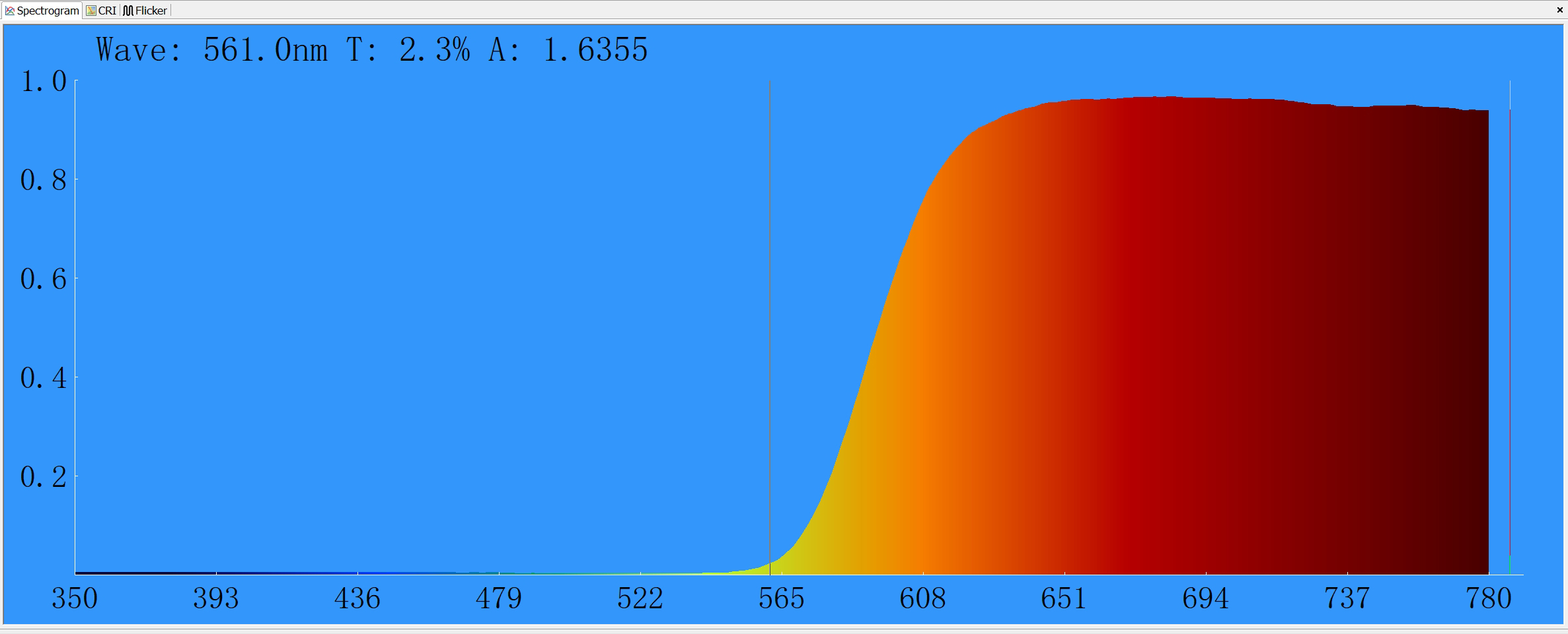 We used a full-spectrum spectral transmittance analyzer, the same type of instrument commonly used in optical labs and certification testing.